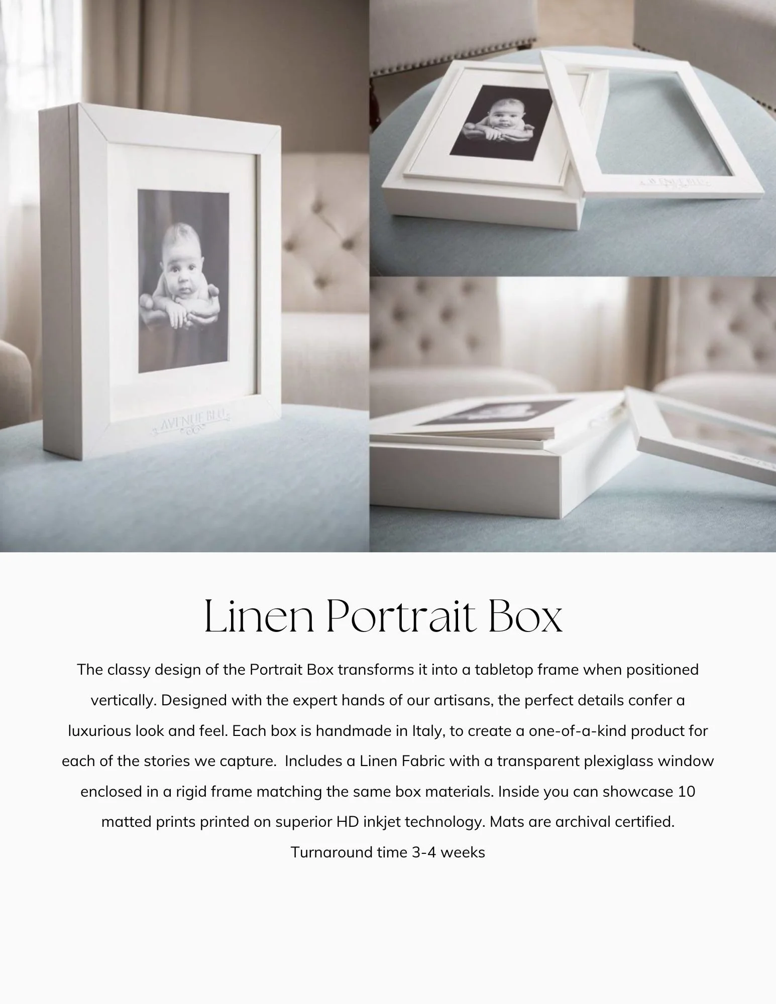 After your session is over we will finalize your collection choice. This is when you will purchase your package. Below you will find my wall art guide and can see examples and videos of our framed prints from start to finish. I offer a beautiful selection of frames to choose from. Framed prints are museum quality printed on archival cotton hahnemuhle paper with Japanese inks. They are stunning. You can view client samples in the guide below. Also popular are my albums. These albums are printed on giclee archival paper and are handmade in Poland. You can view the albums tab below to see client samples and videos of these beautiful books.